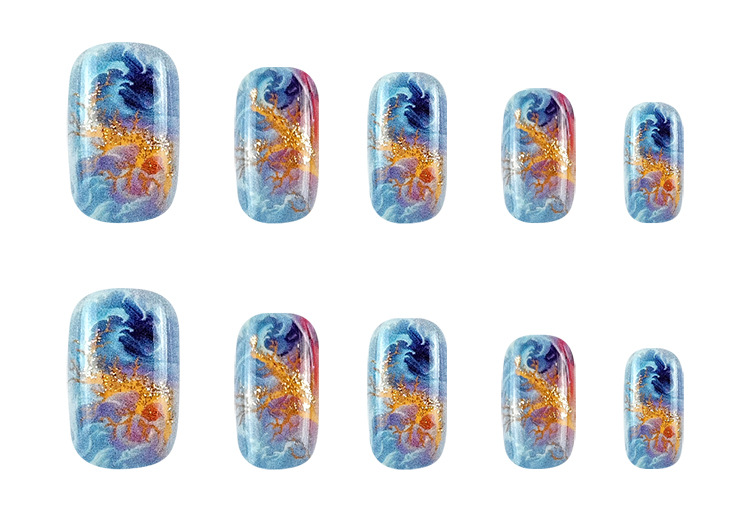 Red And Blue Electric Pattern Flame Stripe Nail Patch